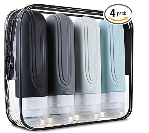Travel Bottles for Toiletries, Tsa Approved 3oz Travel Size Containers BPA Free Leak Proof Refillable Liquid Silicone Squeezable Travel Accessories for Shampoo Conditioner Lotion (4 Pack)